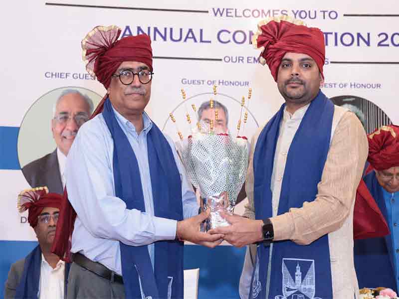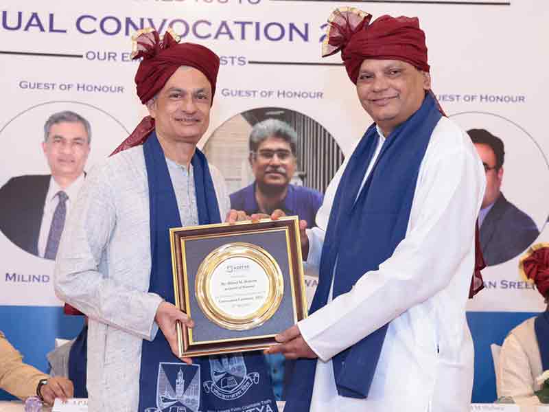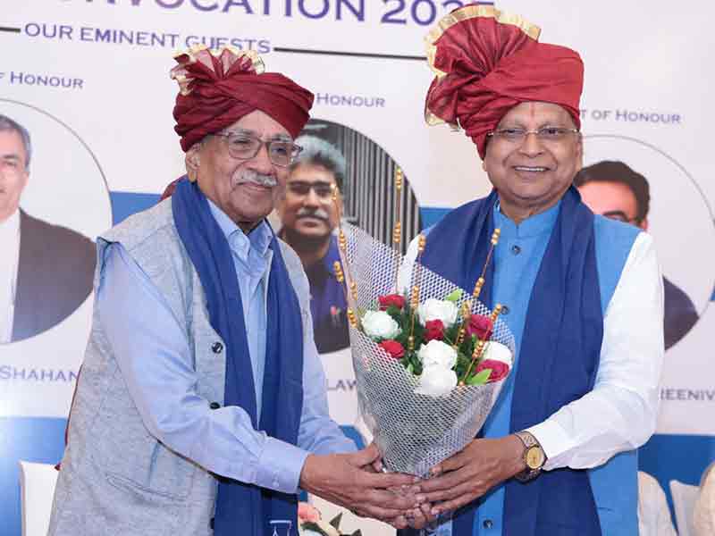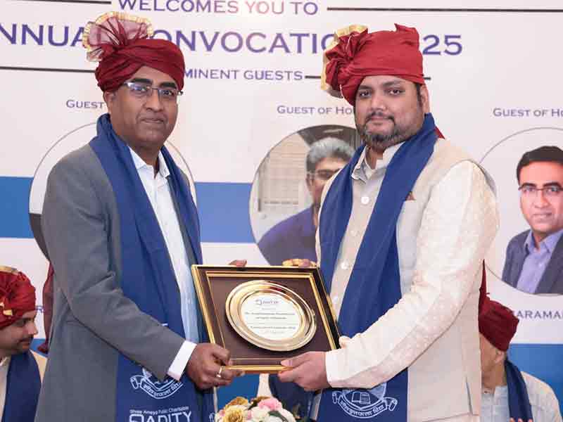 The ceremony began with a dignified procession and the National Anthem, followed by the traditional lamp lighting by Dr. Harishchandra Mishra Ji and trustees. Dr. Balkrishna Parab, Dean (Management) and Director of AIMSR, delivered the welcome address, setting an inspiring tone. Esteemed Guests of Honour—Ar. Vikas Dilawari, Mr. Milind M. Shahane, and Mr. Anantharaman Sreenivasan—shared insights on innovation and leadership. Chief Guest Shri A. P. Jamkhedkar delivered a powerful keynote on heritage and education. The MBA and Architecture oaths were administered by Dr. Parab and Ar. Jamshid Bhiwandiwalla respectively. Toppers across MMS, PGDM, B.Arch, M.Arch, and B.Voc were felicitated, and degrees and diplomas were awarded to all graduates. The event concluded with a Vote of Thanks by Prof. Ar. Jamshid Bhiwandiwalla.